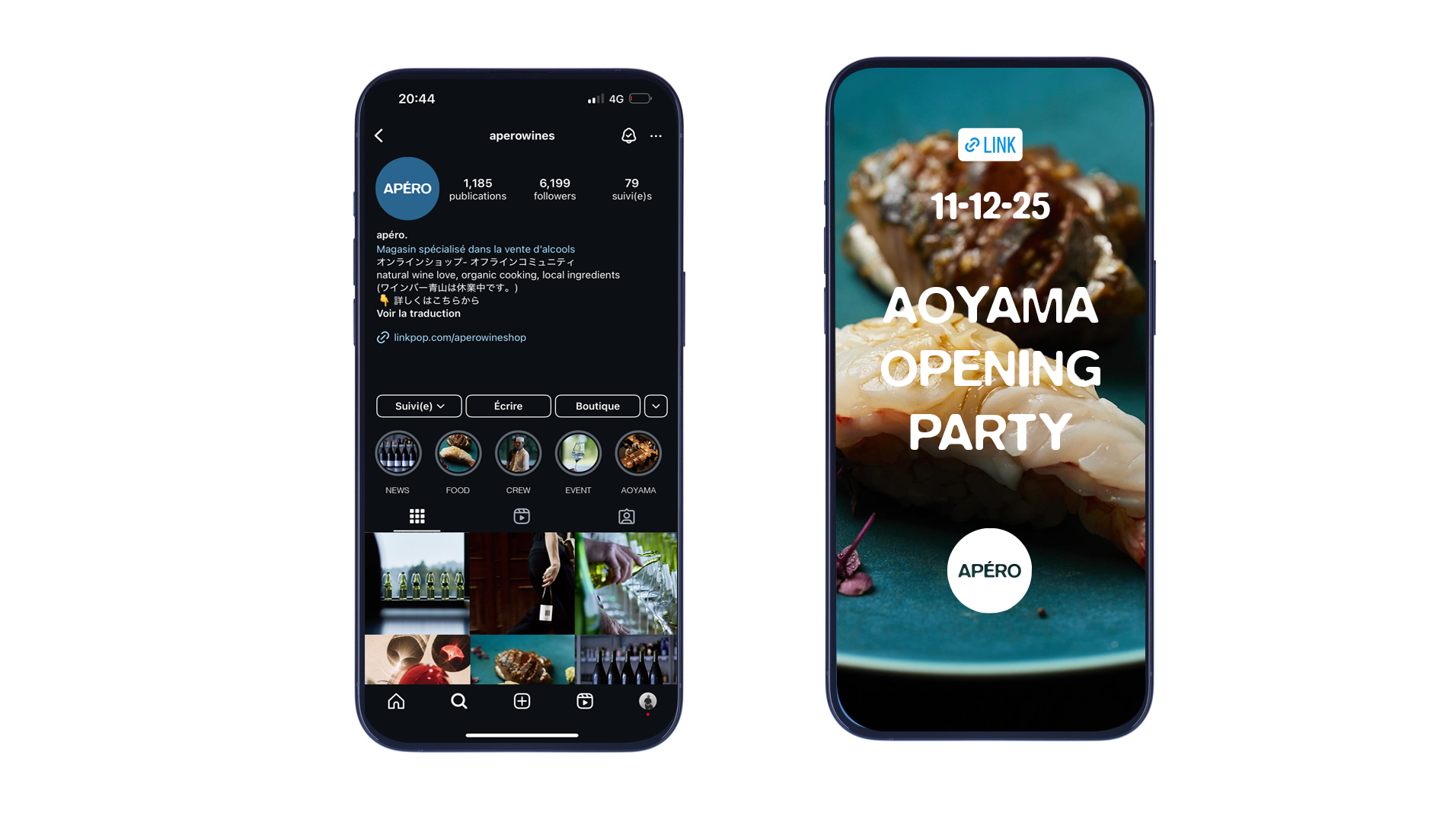 APERO has been based in Japan since 2015, with a collection of restaurants and wine shops. In 2025, the brand initiated a complete visual rebrand to reflect a new vision, an evolving cuisine, and a more refined target audience. Offering some of the finest French cuisine in the city, subtly reimagined with Japanese ingredients, APÉRO also curates a carefully sourced selection of wines from both Japan and France.
